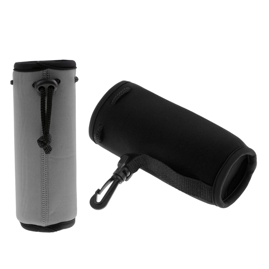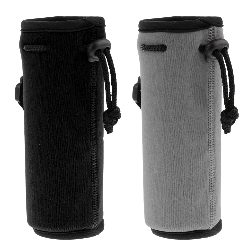 2 Pieces Outdoor Water Bottle Bag Camping Cycling Hiking Kettle Holder Pouch Men Women Grey and Bla